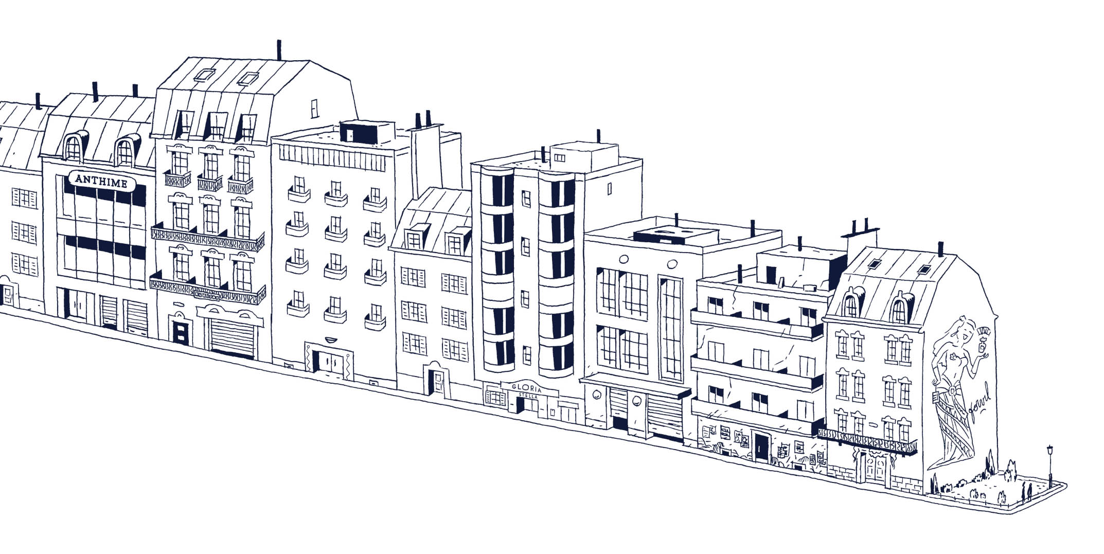 Dessin de la couverture avant et arrière de L’Occupation des Sols. Pour les enthousiastes de Jean Echenoz, j’ai glissé deux références à ses romans.